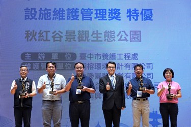 建設局表示,建設局辦理全市大大小小的公共工程,除了三大場館興建外,也遠到和平梨山地區興建橋梁,兼顧施工品質及景觀美學,此次榮獲12項獎項,「水湳國際會展中心新建工程」榮獲建築工程類「特優」及「秋紅谷景觀生態公園」榮獲設施維護管理類「特優」。
