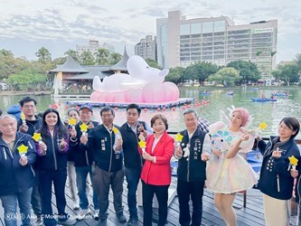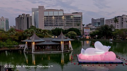 台中公園出現超萌新朋友,療癒指數瞬間飆升!台中市政府攜手 Rights and Brands Asia (RBA),將國際知名 IP「姆明一族 (The Moomins)」溫柔純真的形象自然融入百年歷史場域;今(25)日由建設局長陳大田代表盧秀燕市長到場啟用點燈,這隻深受全世界喜愛的「姆明 (Moomin)」將化身為全新的水上藝術裝置,以超放鬆的「躺平」姿態漂浮在日月湖上,與市定古蹟「湖心亭」同框,讓台中公園瞬間變成最療癒的打卡新熱點。