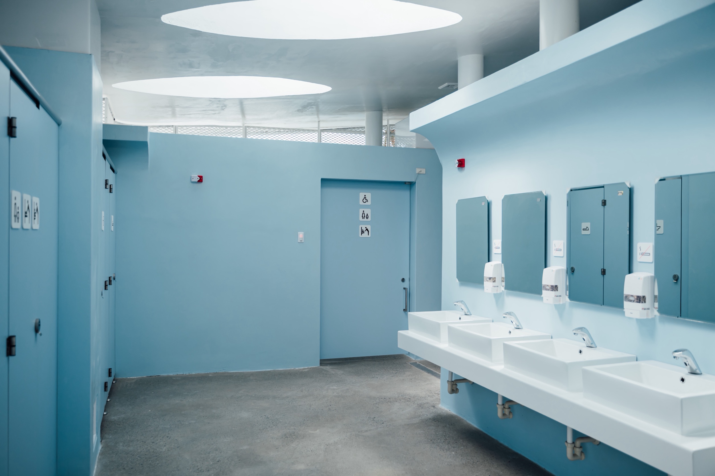 建設局表示,「親子小白宮」兼具美感與實用。內部規劃親子廁所、哺乳室及性別友善廁所,並設有兒童專用馬桶與洗手台,滿足不同族群需求。男女廁比例達1比6、坐蹲間比例13比8,優於一般公廁標準,有效紓解公園人潮高峰的等候問題。另結合智慧管理系統,提供 QR Code 即時通報、耗材監控與久待示警功能,讓民眾使用更舒適,也大幅提升維護效率。