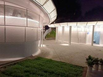 迎接雙十國慶喜氣,台中市政府提前送上驚喜禮!文心森林公園全新「親子小白宮」陽光公廁近日正式啟用,白色純淨的建築隱身綠意樹海,白天俐落清新,夜晚點燈後宛如閃耀光盒,為公園增添神秘浪漫的迷人氛圍。建設局長陳大田表示,「親子小白宮」不僅是一座公廁,更是森林中的亮點新景,歡迎市民與遊客前來探索拍照,留下城市專屬的美好記憶。