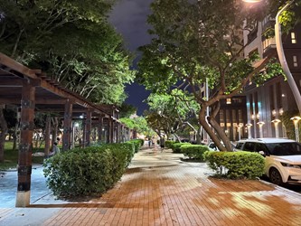 建設局表示,景觀層面,市府特別於臨公益路側調整樹穴,並補植台灣原生櫸木,搭配草皮綠化,營造更舒適的遮蔭環境與生態價值,同時新增及提升周邊燈光數量及照度達53盞,白天綠意盎然、夜晚光影柔美,展現耳目一新的城市風貌。