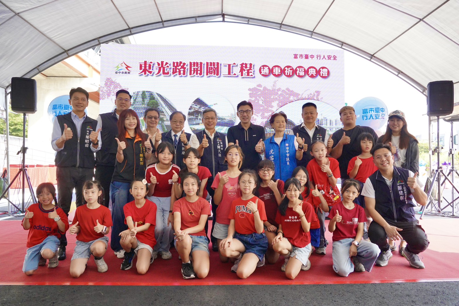 台中北屯區南北向主要幹道「東光路」首階段工程今(16)日正式通車!為紓解松竹路及東山路車流壅塞問題,市長盧秀燕積極推動「東光路計畫道路開闢工程」,在市府建設團隊努力下,首階段「松竹路一段至南興三路」及「東山路一段至東光路892巷」路段順利完工,總經費達新台幣23.1億元。今由建設局長陳大田與民政局長吳世瑋代表盧市長共同主持通車祈福典禮,象徵北屯交通建設再邁新里程,將有效改善松竹路與東山路一帶交通,並強化捷運與台鐵松竹車站聯外功能。