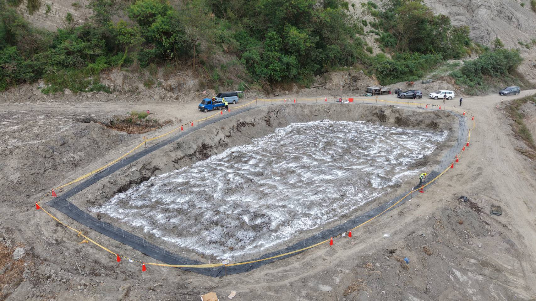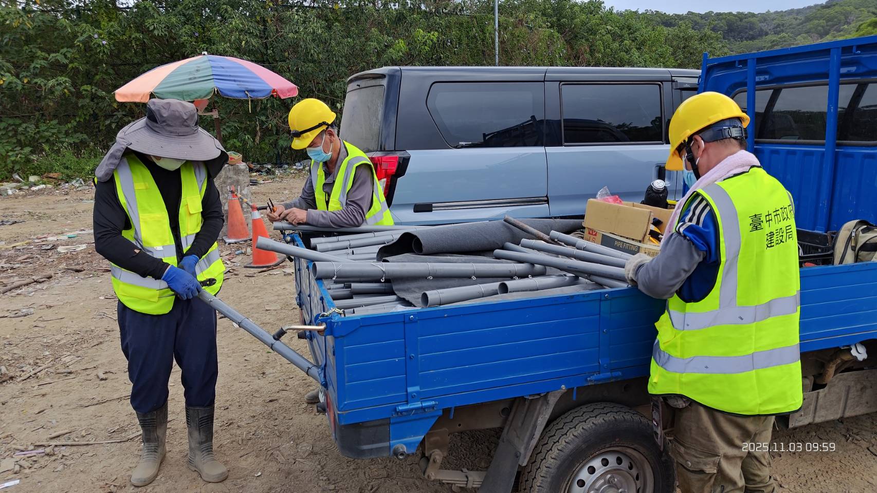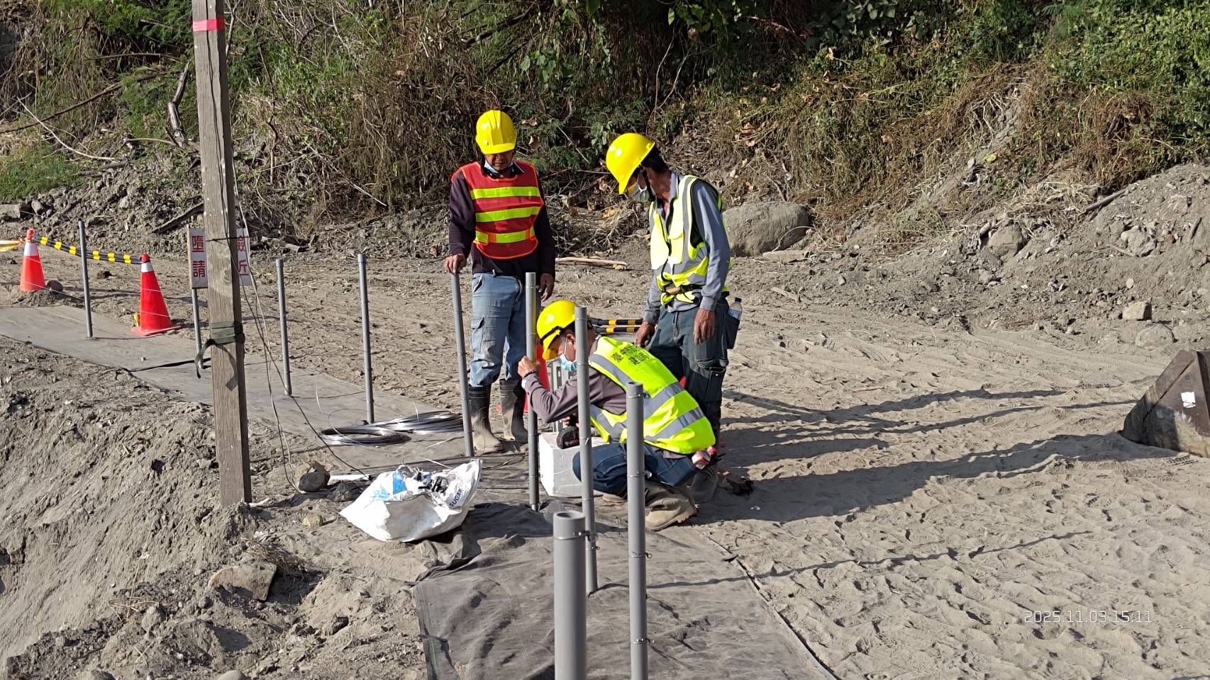 建設局說明,此次作業採兩階段進行,第一階段先鋪設抑草席及立柱,第二階段再加裝電網並完成電壓測試。