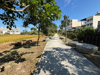 陳局長指出,豐原「社皮美樂地公園」分為三階段開闢及優化工程,第一、二期共投入約1,500萬元,第一期將原公墓綠美化轉型為公園空間,第二期打造豐原首座寵物專區,廣受居民好評;由於園區呈狹長形,入口辨識度不高,經地方建議後,市府推動第三期工程,投入130萬元辦理入口意象優化工程,使公園門面更具特色、更加親切。