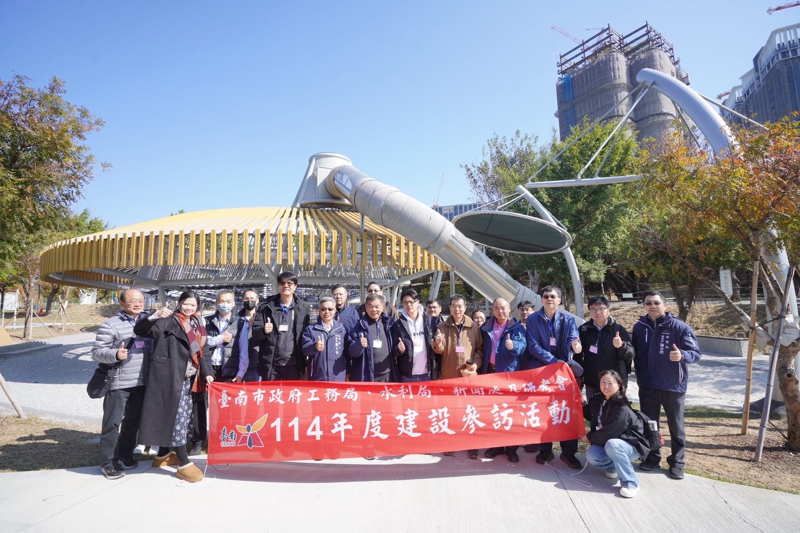 台中市重大工程成果持續受到六都縣市關注,成為跨市建設交流的重要學習標竿!台南市議會工務委員會盧崑福、周奕齊議員偕同台南市政府水利局長邱忠川、工務局副局長鄒譽名、研考會副主委陳仲杰及新聞處等共20位同仁,昨(8)日蒞臨台中進行建設參訪,由台中市政府建設局長陳大田代表市長盧秀燕接待,實地走訪城市綠肺核心「中央公園」及全台屋頂曲面最複雜、採用最多空間桁架結構的「台中國際會展中心」。