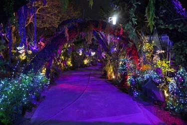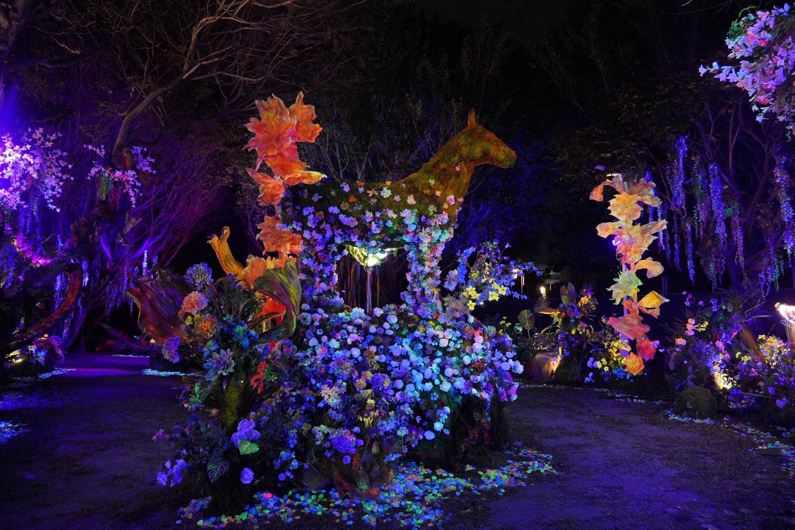 建設局說明,「驚蟄界」由曾打造高人氣燈區「龍之異次元」的策展團隊再度操刀,以「春雷喚醒大地、萬物重新萌生」為核心概念,融合工藝、花藝、多媒材裝置與聲光特效,形塑具高度沉浸感的雨林式場景;並呼應馬年意象,注入動感與能量,讓民眾在行走燈區時,彷彿親身感受春天甦醒的節奏。