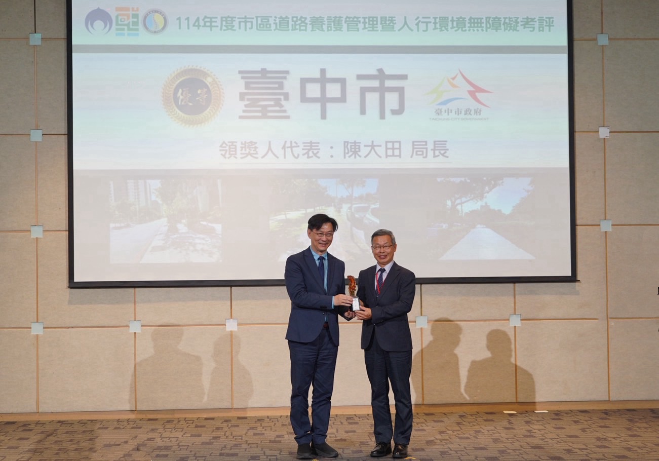 台中市長盧秀燕致力打造安全、友善且宜居的「友善行人之都」,在重大建設與道路人本環境改善上成果卓越;內政部國土管理署舉辦的114年度「市區道路養護管理暨人行環境無障礙考評計畫」以及113114年「都市公園綠地無障礙環境督導計畫」,台中市一舉榮獲8項大獎肯定,再創亮眼佳績;台中市政府建設局長陳大田今(10)日於市政會議中獻獎,與盧市長及市民分享這份榮耀。