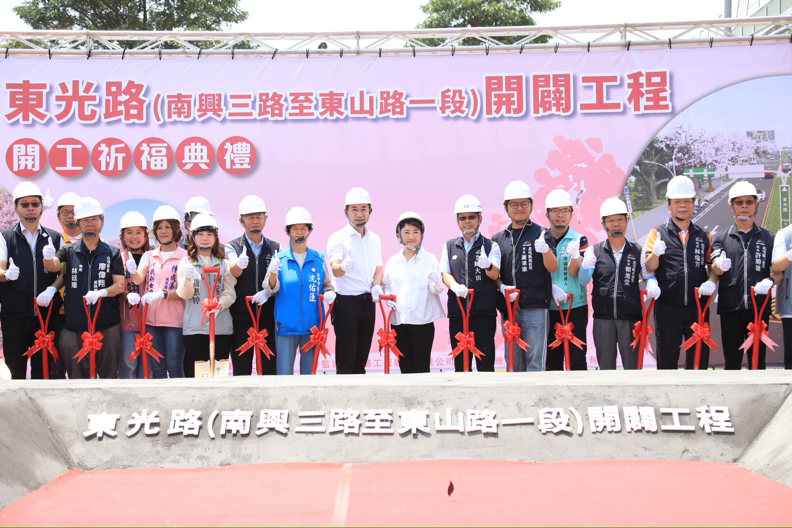 今日動土典禮,盧市長、立法院副院長江啟臣、市議員沈佑蓮、謝家宜、市府建設局長陳大田、新工處長陳聰仁、警察局副分局長陳鴻斌、在地里長與各界貴賓皆到場共襄盛舉;立法委員黃健豪、廖偉翔、黃仁、市議員陳成添、曾朝榮、賴順仁、黃馨慧亦派代表到場。