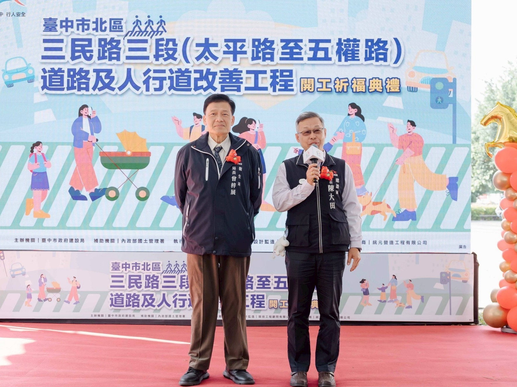 「三民路」是北區重要的交通要道,串聯一中商圈、中友百貨、台中科技大學、台中公園及第二市場等熱門景點;台中市政府高度重視市區人行安全與道路品質,台中市政府建設局斥資8,029萬元推動「北區三民路三段(太平路至五權路)人本改善工程」並成功爭取中央補助經費,全面增設實體人行道加寬至4公尺,今(7)日由建設局長陳大田與衛生局長曾梓展共同代表市長盧秀燕主持開工典禮;工程完工後,將全面改善行人安全與行車動線,打造更安全、舒適的城市道路環境。