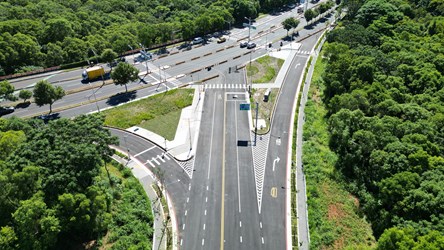 另外,為提升人本環境及加強行人安全,道路兩側設有1.8公尺寬人行道及1公尺寬植栽帶,保留在地大肚山原生樹種(如小梗黃肉楠、山香圓及小葉赤楠等),生長狀況不佳的喬木破碎為廢木屑後,將製作為植栽沃土有機肥料,達成永續環保概念。