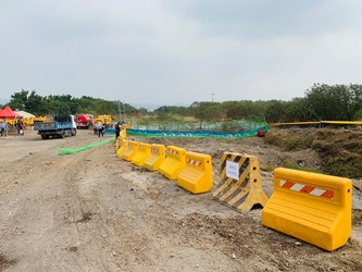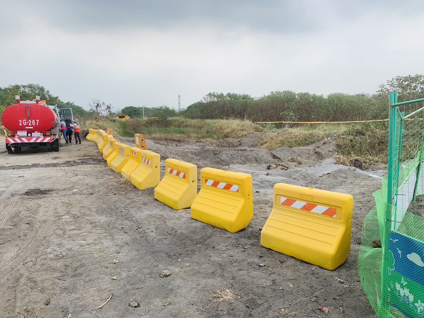 陳局長進一步說明,建設團隊接獲環保局及農業局需求後,立即調派人員與設備支援,除了配合環保局完成1處作業區圍籬架設及2處備用區紐澤西護欄圍設外,亦協助農業局於染疫豬舍設置隔離網,防止犬貓、鼠類等動物進出,降低疫情擴散風險;另為強化防疫層級,建設局今(31)日再投入吊車設備,協助完成上層圍籬設置,進一步封閉疫區邊界,阻絕鳥類及其他動物入侵,有效防止病毒外溢,確保防線更為嚴密。