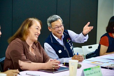 陳局長表示,國際遊戲協會(IPA World)主席羅賓·孟洛·米勒女士(Robyn Monro Miller)擁有近40年倡議經驗,長期致力於為孩子營造一個多元融合的遊戲環境,曾在教育、地方政府、兒童服務機構和非營利組織擔任高階領導職務。她的倡導和領導才能獲得了多項獎項的認可,包括澳大利亞聯邦百年紀念獎章和澳大利亞榮譽勳章(AM)。羅賓熱衷於推動改革,以改善澳洲兒童的政策和規劃。她曾多次擔任部長級諮詢委員會成員,並在1996年至2018年間為澳洲學齡兒童照顧產業的改革做出了重要貢獻。